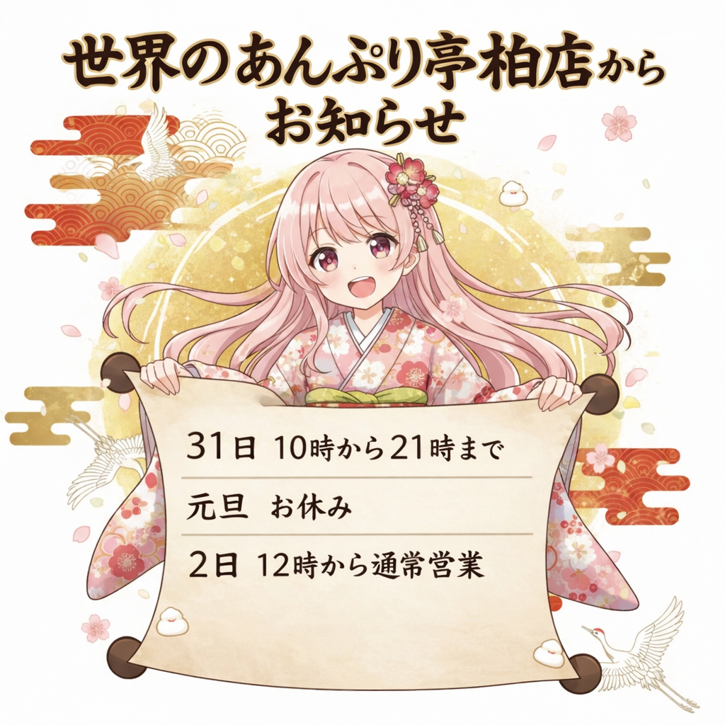 年末年始の営業時間につきまして、下記の通りご案内いたします。